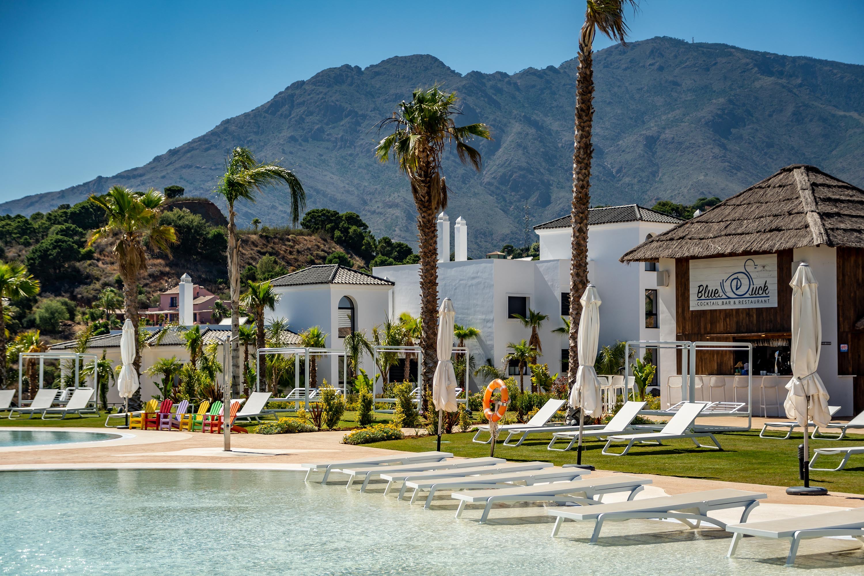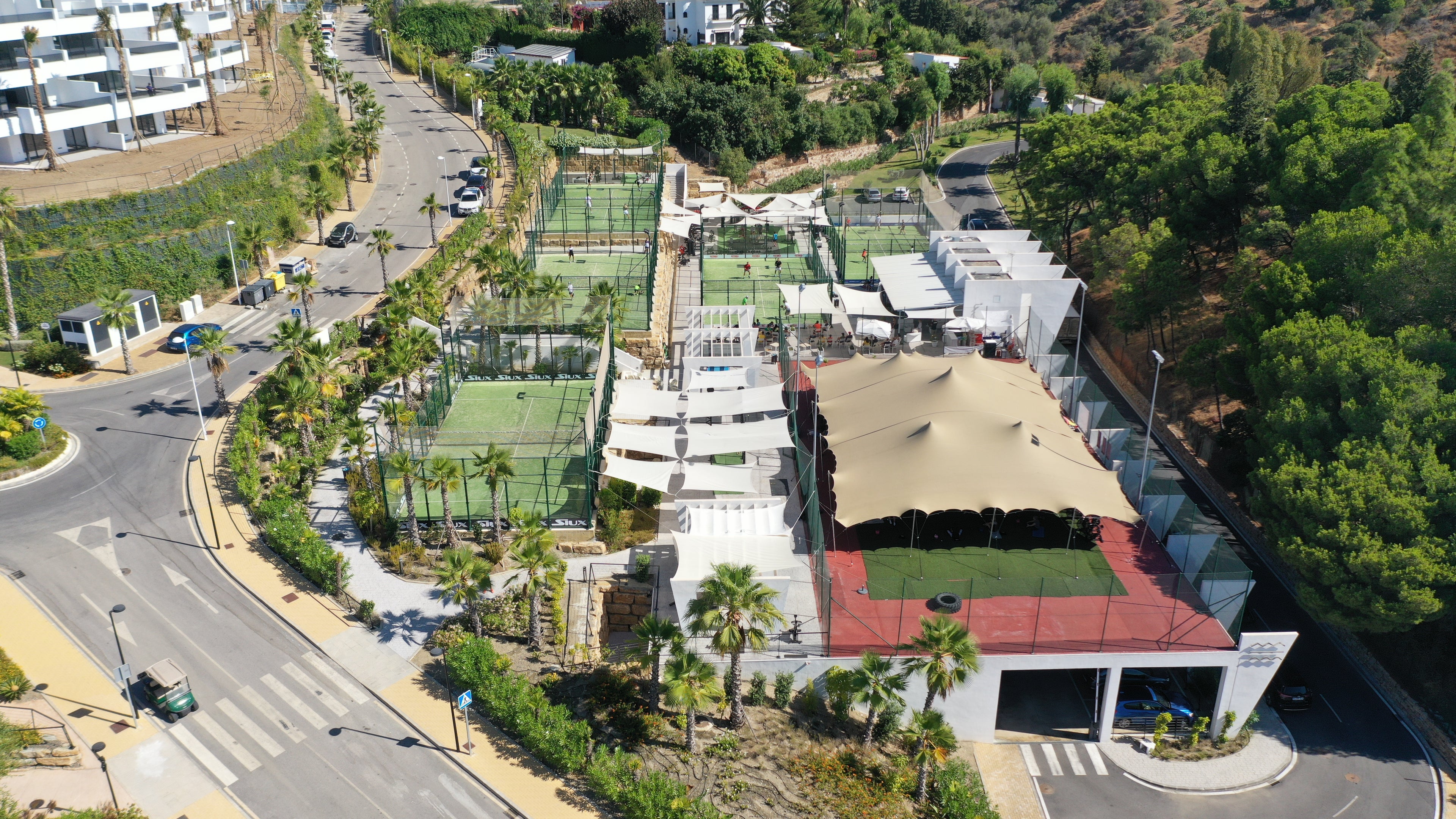 Les merNyt et luksuriøs resort med padelklubb, bassenger, restauranter og treningsstudio. Alt med fantastisk utsikt over fjell, hav og Estepona by. Tren med legenden Godo Díaz og spill på vakre baner med havutsikt.